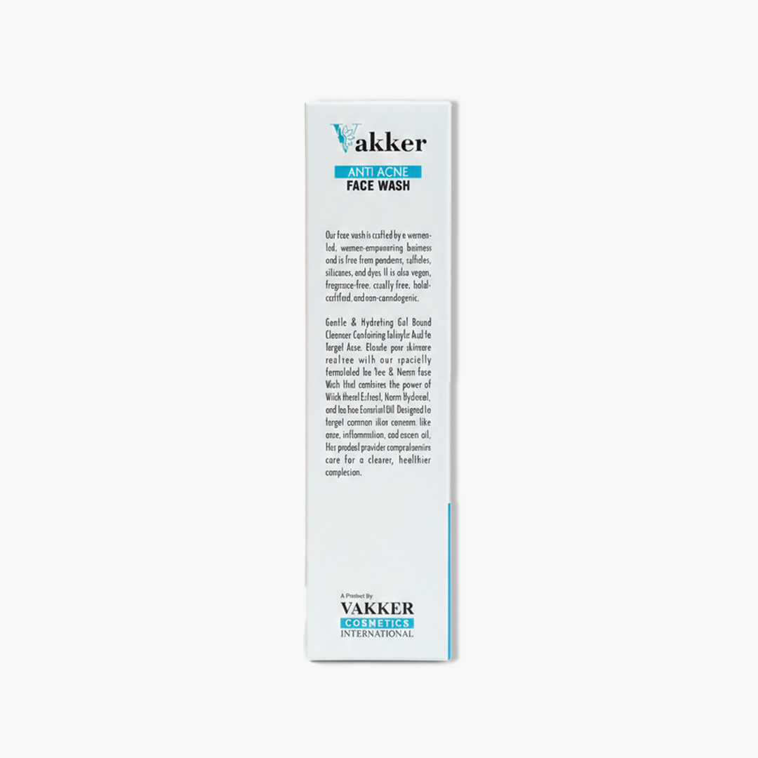 Vakker Anti Acne Face Wash – Purify, Clear, and Control. Banish breakouts and reclaim clear skin with the Vakker Anti Acne Face Wash. This powerful gel cleanser combines Salicylic Acid, Tea Tree Oil, and Neem Extract to penetrate deep into pores and eliminate acne-causing bacteria. It actively controls excess oil and exfoliates dead skin cells without stripping moisture, leaving your face feeling fresh, balanced, and blemish-free.