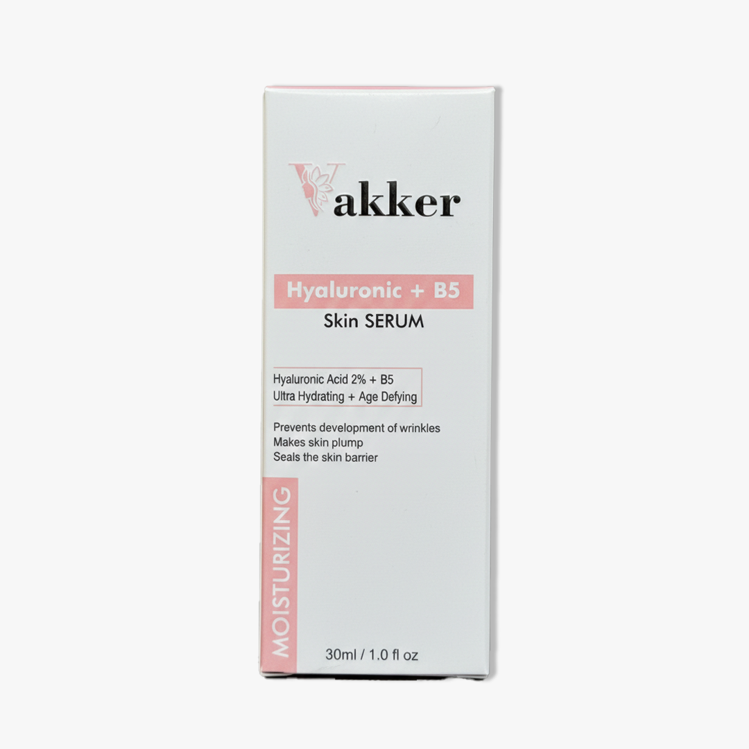 Vakker Hyaluronic + B5 Serum – Ultra-Hydrating & Age-Defying. Restore your skin’s youthful bounce with the Vakker Hyaluronic + B5 Serum. Infused with 2% Hyaluronic Acid and Vitamin B5, this ultra-hydrating formula penetrates deep to plump the skin and smooth fine lines. It seals the moisture barrier to prevent wrinkles and tightness, leaving your complexion soft, firm, and visibly refreshed.